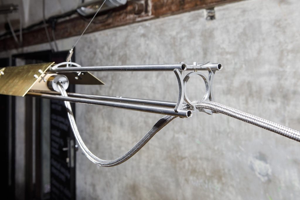 | Popis | L316 je světelný objekt navržený pro vinárnu Bokovka. Vychází z kombinace průmyslových a řemeslných prvků, které se propojují prostřednictvím viditelné spojky. Ta slouží nejen jako technické řešení, ale i jako výrazný konstrukční detail, umožňující variabilní sestavení z nerezových trubek. Světlo se odráží od ručně tepané mosazi, která vytváří měkký, teplý odlesk. Svítidlo nahrazuje večerní svíčky a přirozeně zapadá do atmosféry místa. |