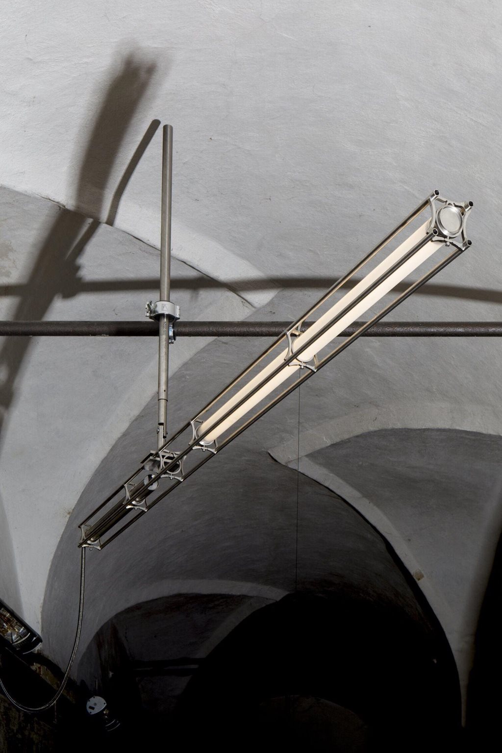 Popis L316 je světelný objekt navržený pro vinárnu Bokovka. Vychází z kombinace průmyslových a řemeslných prvků, které se propojují prostřednictvím viditelné spojky. Ta slouží nejen jako technické řešení, ale i jako výrazný konstrukční detail, umožňující variabilní sestavení z nerezových trubek. Světlo se odráží od ručně tepané mosazi, která vytváří měkký, teplý odlesk. Svítidlo nahrazuje večerní svíčky a přirozeně zapadá do atmosféry místa.