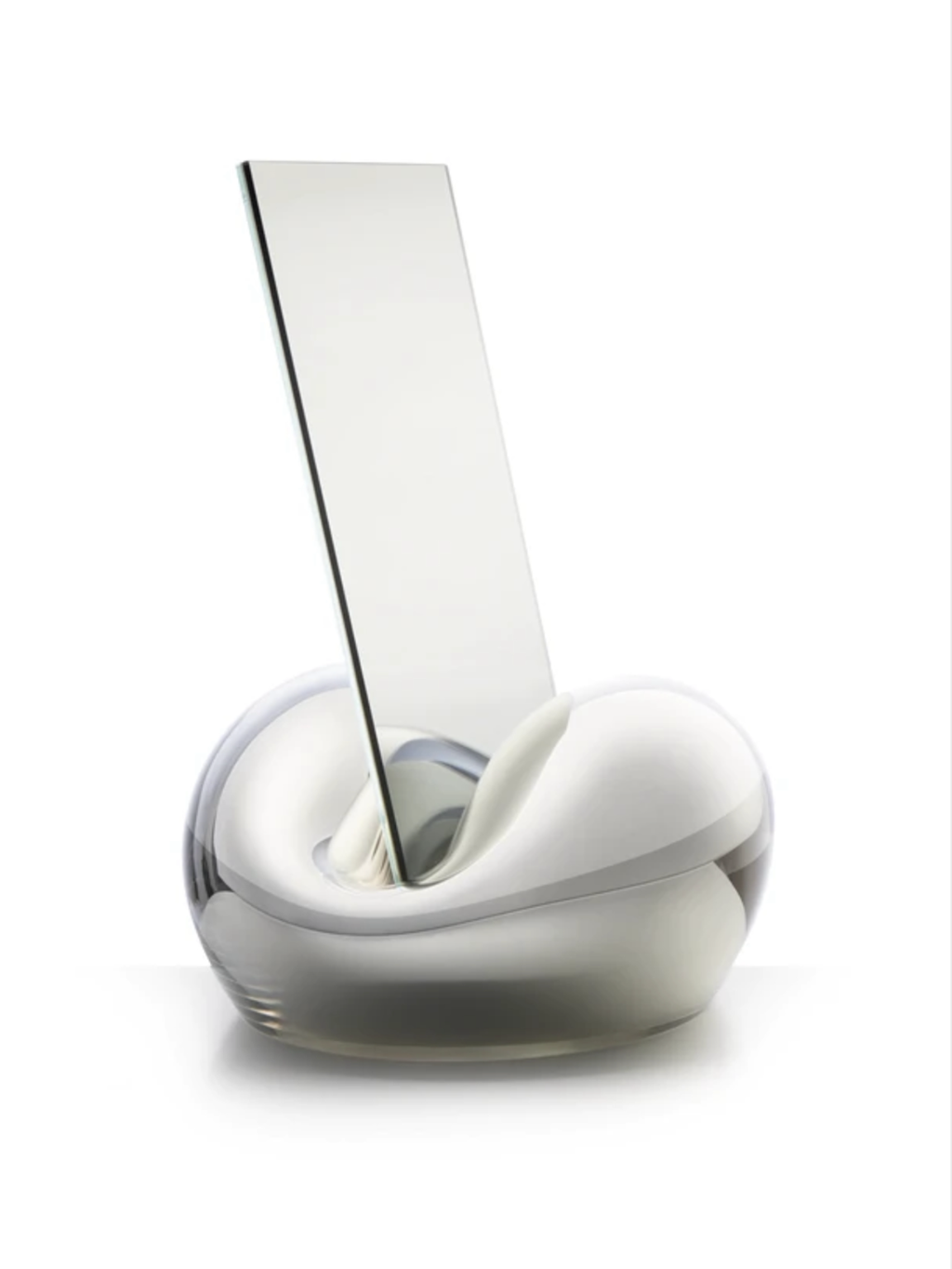 | Popis | The creation of this set presents a technical challenge that demands the precision and sensitivity of an experienced glassmaker. The material comes to life through breath, tightly enveloping the rectangular mirror like a large piece of chewing gum frozen in time. The coated glass variant combines the precise, flat reflection of the mirror with the distorted reflection of the bubble-like base. |