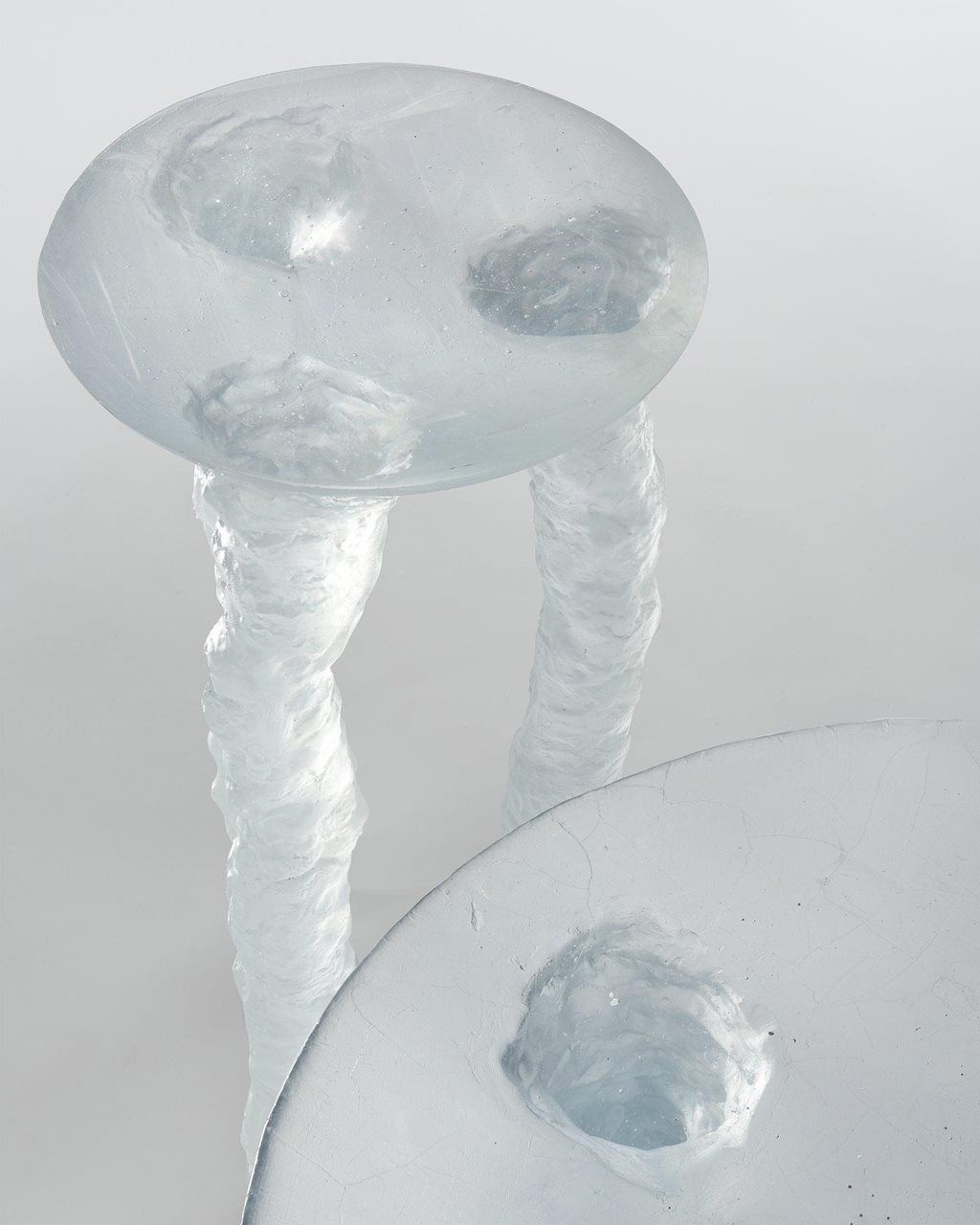 | Popis | Série návrhů vyrobených z taveného skla. Kolekce je inspirována pocitem neuchopitelnosti a utopickými vizemi. Při pohledu na tuto sérii si divák klade otázku, zda není vyrobena z tajícího ledu; dojem prchavosti a pomíjivosti je umocněn vznešenými proporcemi celého objektu. Díky ručnímu modelování nelze vytvořit dva identické kusy. Byla použita autorská technika, která vyžaduje méně materiálu a výrazně zkracuje dobu tavení skla, čímž se snižuje dopad na životní prostředí. |