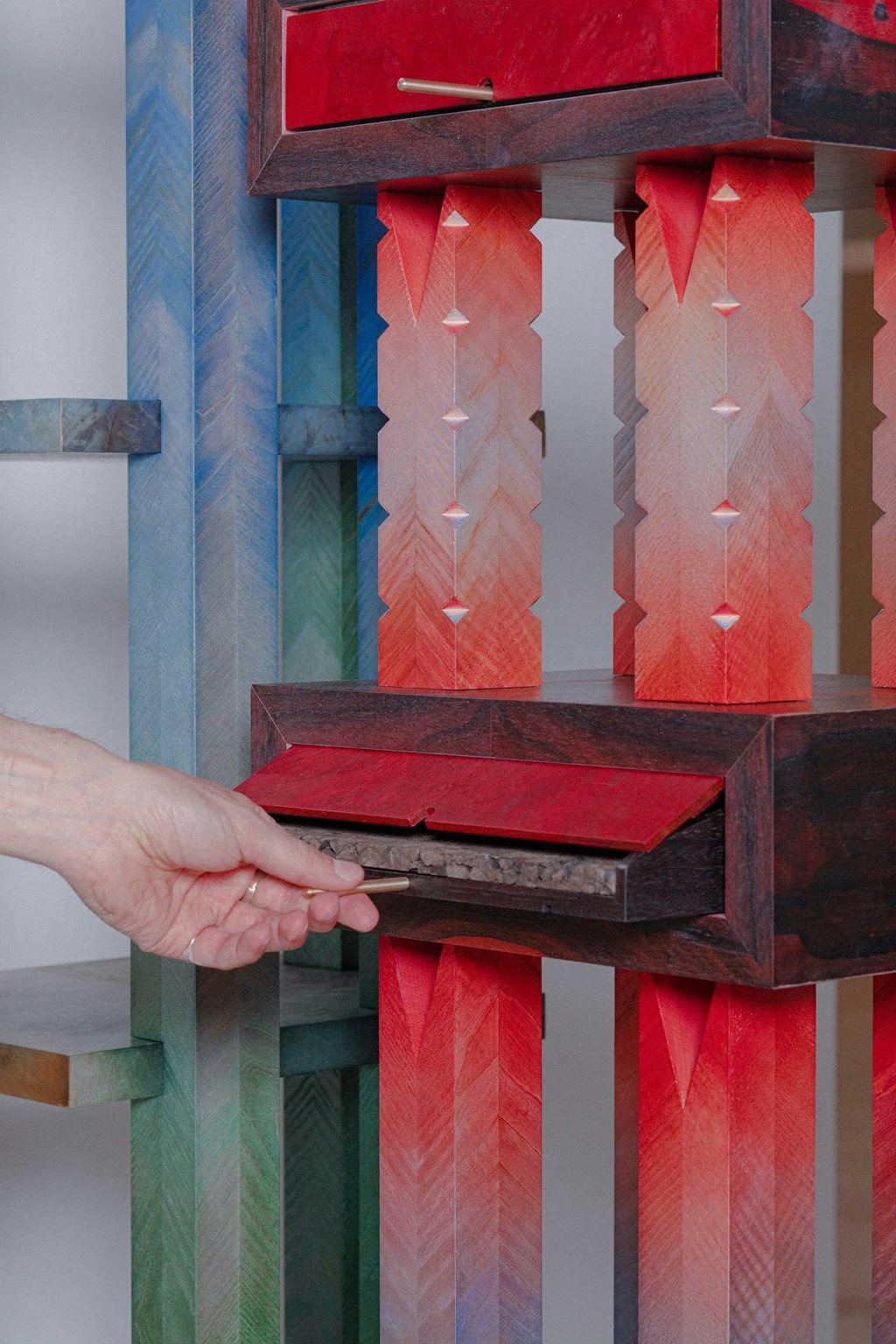 | Popis | Jiří Krejčiřík představuje kabinet pro značku Futuro Studio, který je doplněn autorskou lavicí Arnaud. Členitý kabinet završuje kolekci Roots, kterou Jiří Krejčiřík společně s ostravskou značkou v českém kontextu poprvé představili na Designblok 2022. V zahraničí pak měla premiéru letos v dubnu v rámci Milan Design Weeku na prestižní lokalitě Alcova. Roots zahrnuje spektrum šesti základních úložných objektů — polic, skříní a komod — které spojuje inspirace lesem a jeho organickými tvary. Pro kolekci je zásadní symbióza moderních technologií a tradičních řemeslných postupů, která dovoluje pracovat s jemnými detaily, barvou, vzácnými dřevy a také dřevěnou dýhou, díky níž má celá kolekce Roots nezaměnitelnou texturu a sofistikovanou barevnou hloubku. Kabinet je sedmým objektem, kterým Krejčiřík a Futuro Studio uzavírají společnou cestu kolekcí Roots. Jedná se o limitovaný kus, do něhož se Krejčiříkova autorská estetika otisknula nejvýrazněji z celé kolekce. Druhým vystaveným solitérem je v rámci instalace designérova autorská lavice Arnaud. Její erbenovsky červená barva a výrazné tvarosloví volně rezonují se sousedícím kabinetem a vytvářejí s ním nečekané pojítko právě skrz Krejčiříkův osobitý styl. Lavice je pojmenovaná po Arnaudovi Grilhovi, francouzském stážistovi, který pomáhal s výrobou prvního exempláře. |