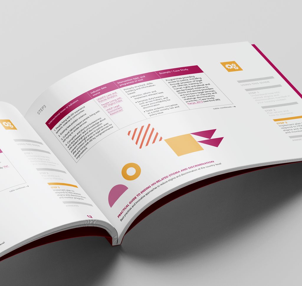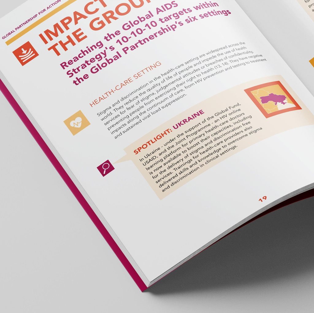 | Popis | "The Global Partnership to Eliminate All Forms of HIV-Related Stigma and Discrimination" je iniciativou 10 agentur OSN a 24 organizací občanské společnosti. Byli jsme osloveni s úkolem vytvořit malou vizuální identitu, která vychází z korporátní identity UNAIDS, ale stále má svůj originální a rozpoznatelný charakter. Iniciativa nepoužívá vlastní logo, protože působí pod UNAIDS, místo loga má výrazný "wordmark". Celá identita je postavena na hravých a odvážných geometrických kompozicích a 3 pozitivních barvách. Naše studio také vytvořilo design a zlom třech publikací v několika světových jazycích. |