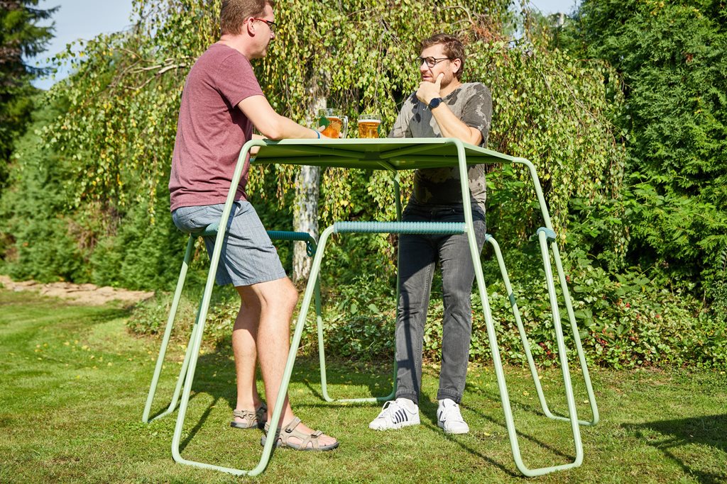 | Popis | Koktejlový stůl poskytuje opření ve stoje o vyvýšené sedáky/opěry. Stoly jsou tak vhodné pro rychlé občerstvení i k delším neformálním rozhovorům s nápoji. Výhodou je jejich stohovatelnost a stabilita bez nutnosti kotvení, jež umožňuje stoly využít na velkých společenských akcích s krátkodobým trváním. Vhodné jsou také například před restaurace s následnou menší náročností na velikost skladových prostor mimo sezónu. Použitelný je jak v interiéru, tak v exteriéru. Produktová řada obsahuje stoly určené pro 4, 5 nebo 6 osob. |