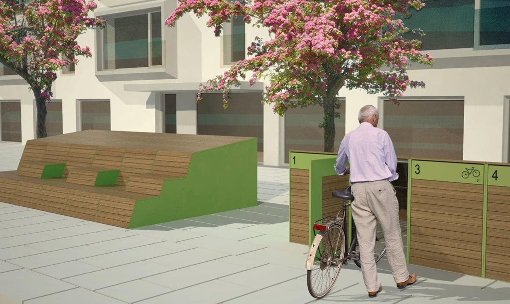 | Popis | Cyklobox a modulární sedací systém v jednom Hide & Bike přináší do města hravost a kreativitu. Slouží k uložení kol a zároveň jako variabilní lavice, z které lze pozorovat místo i z jiné než běžné perspektivy. Hlavní objem tvoří box pro uložení kol, přídavné moduly slouží jako sedáky ve dvou výškových úrovních a umožňují vystoupat až na zastřešení. Celý box tak lze užívat k sezení či ležení. Je možné jej umístit solitérně nebo jako řadu a vytvořit různé sestavy s širokým využitím. Od dlouhé lavice po kompaktní sestavu tvořící elevaci městského hlediště či pohodlné molo k slunění. |