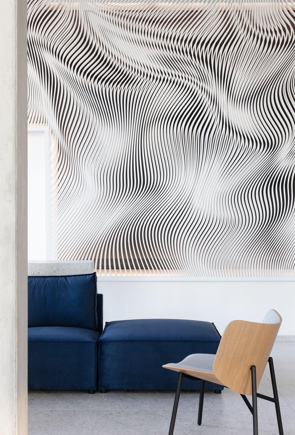 | Popis | Autorské dílo „Magion“ se nachází ve vstupním lobby budovy Alfa Tower v Říčanech. Čerpá inspiraci z interference elektromagnetických vln. Funguje na moiré principu, díky kterému vyvolává iluzi pohybujících se geometrických obrazců a vzájemně se prolínajících siločar. Magion je součást interiéru navrženého architektonickým studem KLIK. |