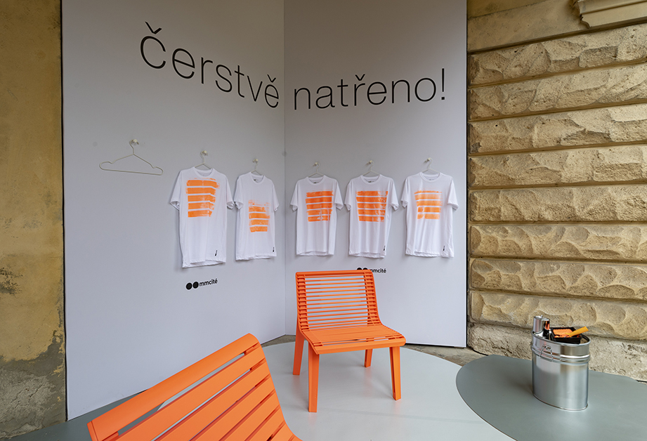 | Popis | Pro firmu mmcité jsme navrhli koncept expozice v rámci Designbloku 2020. Naše hravá instalace byla součástí venkovního prostoru půlkruhového presbytáře kostela Gabriel Loci. Pod oblouky kostela Zvěstování Panny Marie se v hlavní roli představily čerstvě natřené lavičky Emau, které se proměnily v unikátní kreativní nástroj. Pod heslem “Čerstvě natřeno” sloužily jako razítko, které si mohou návštěvníci sami obtisknout na bílá trička. Vtipnou a kreativní formou se tak nové produkty značky doslova vtiskly do paměti návštěvníků. |