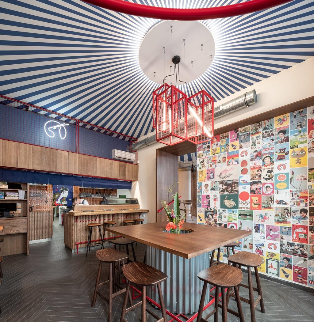 | Description | INTERIOR OF JAPANESE IZAKAYA MANYA Neither a bistro nor a sushi restaurant. Simply izakaya. Traditional Japanese pub where you can fill your belly and wash everything down with beer or sake. The kitchen is always buzzing, the bar is full of joy, bustle, and life. Creating such an atmosphere allowed us to run our imagination wild. High contrast, colors, various lights, different heights of tables and chairs… The exact opposite of simple, minimalist interiors. All you have to do is enter and be transported to the other side of the world. We combined inspiration that Margita and Martin gathered in Japan, retro style, and Japanese pop art. All of this was put together into a functional and lively whole with an almost homely atmosphere. Despite the relatively small space, we managed to fit in a large central table that can be used to hold workshops and events, as well as small tables for smaller groups and couples, and an area for private gatherings. Whether you come to drink sake or for a relaxed food tasting, you won’t be able to tell if you are still in Brno or one of Tokyo’s alleyways. |