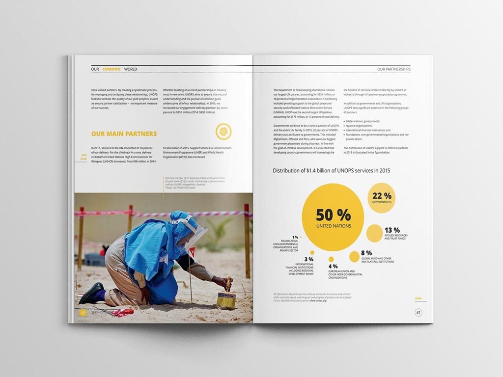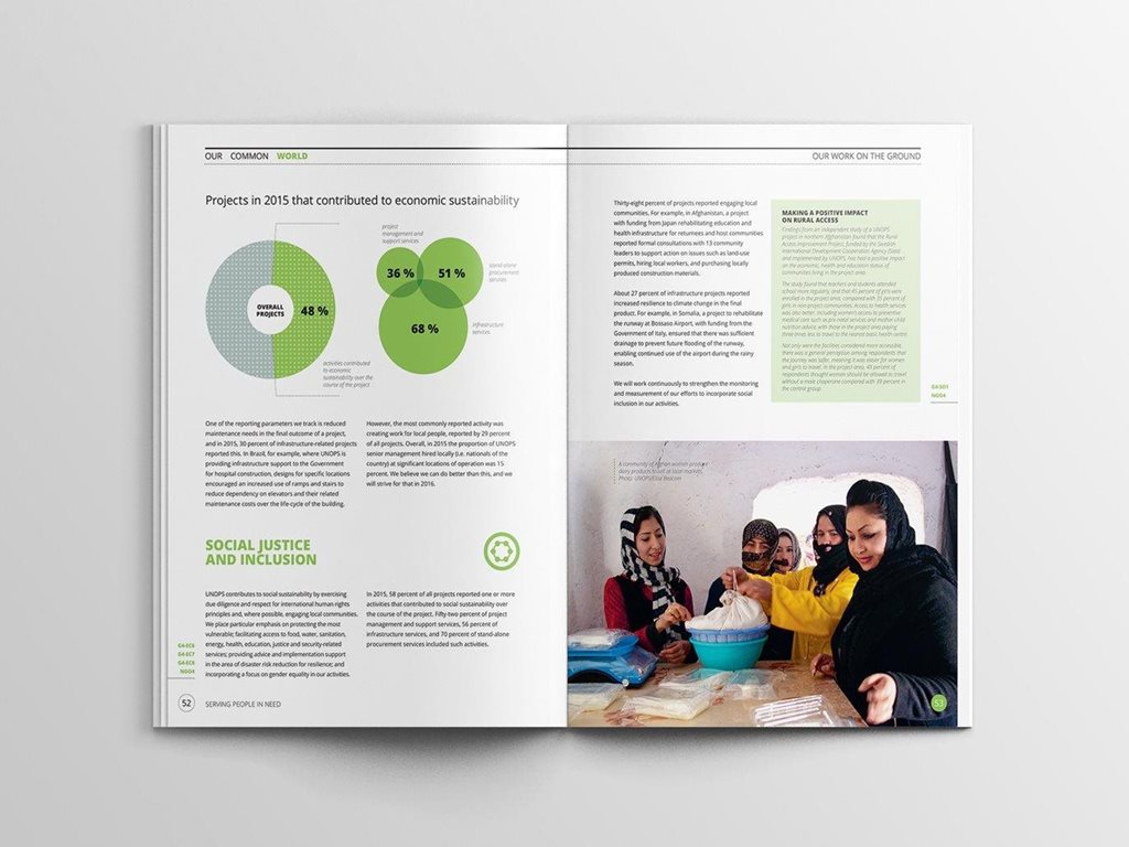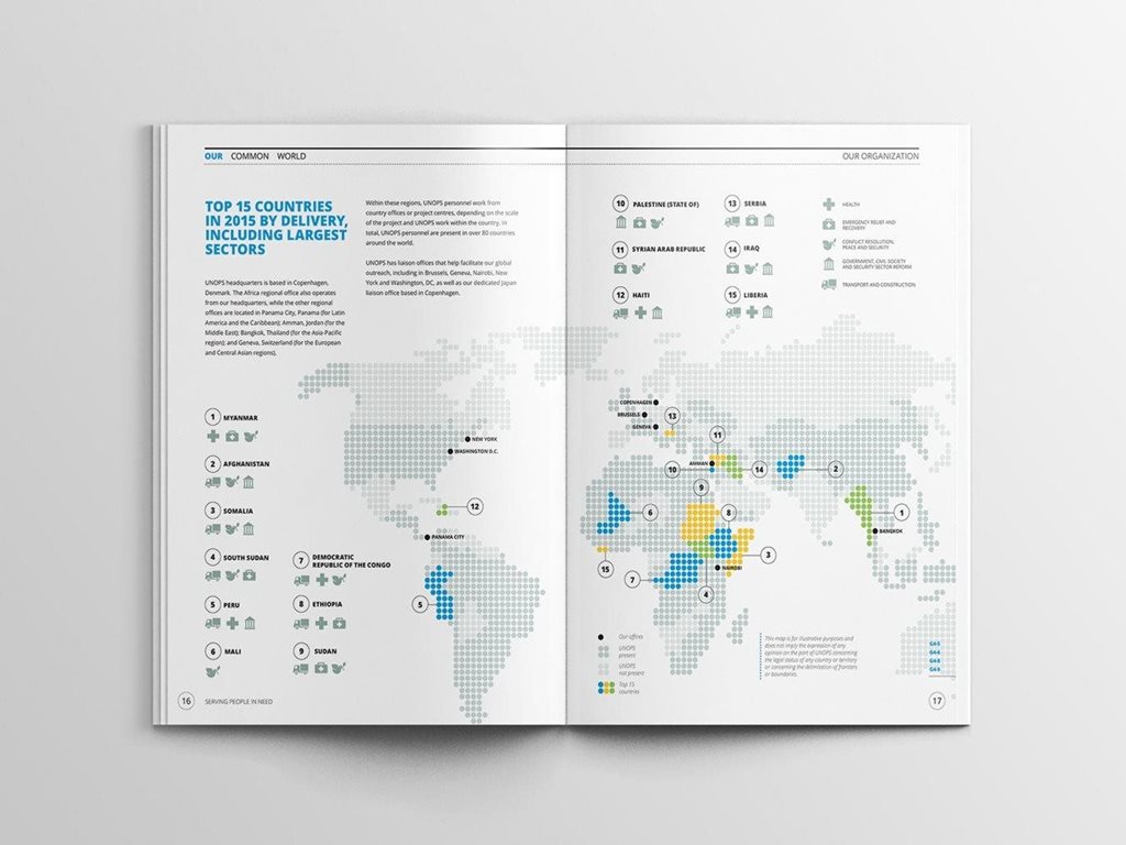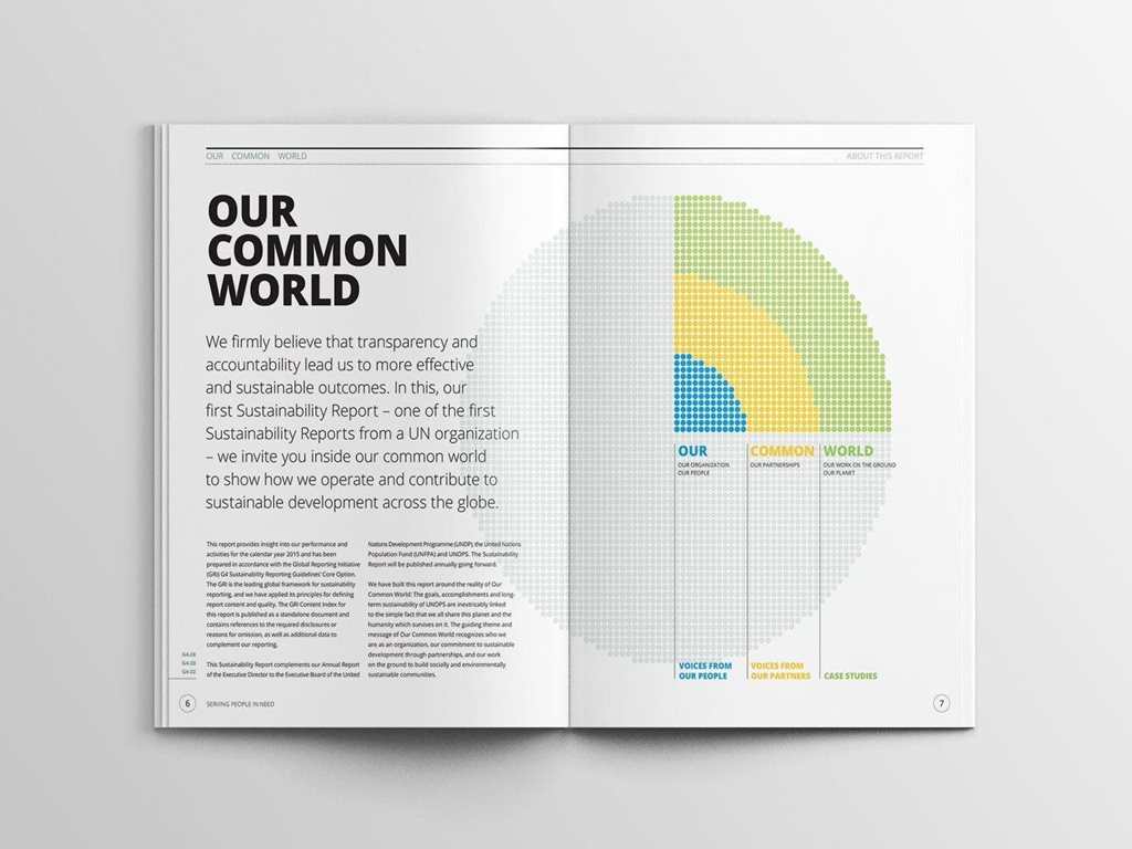 | Description | In 2016, we delivered the first sustainability report for the United Nations, Our Common World for UNOPS. We have developed the complete design for the report including complex infographics and delivered print-ready files for all its language versions: English, Spanish and French. |