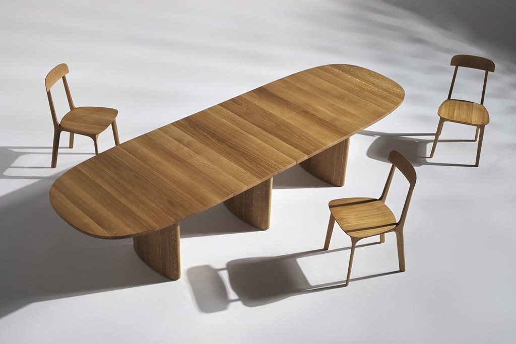 | Description | The brief from Kaplan 1934 was to design an extendable table with an oval top and a central base. The resulting opulent design of the Tria table is built around a central composition. A massive elliptical tabletop rests on three oval pillars, concentrated beneath its center of gravity. The table offers three size variations. It can be expanded from a compact monolithic solitaire to an almost twice-as-long banquet table. Tria commands attention and enhances the dining experience. Its hedonistic design and meticulous craftsmanship bring a sense of exceptionality to everyday life—and make exceptionality feel effortless. |