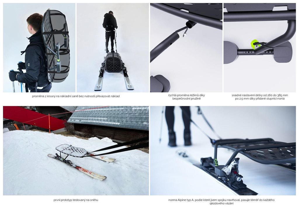 | Description | I am involved in the development of sporting equipment that, in combination with alpine skis, forms a product similar to a sled designed for transporting cargo and downhill skiing. During the design process, I added the functionality of a backpack, which is created by attaching a pulling hip strap and shoulder straps to the sled frame. In development, I focus on achieving the highest possible compactness, compatibility with the largest possible number of alpine skis, easy and safe handling, and the ability to quickly and easily adjust the product even in challenging mountain conditions. |