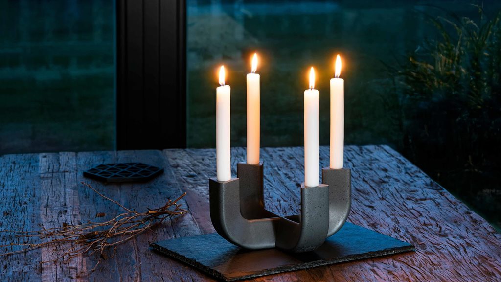 | Popis | Exkluzivní kolekce betonových čtyřramenných svícnů, které v sobě spojují eleganci s moderním industriálním minimalistickým designem. Hodí se na slavnostní příležitosti, ale i na zvelebení prostoru pro ty, kteří mají rádi svíčky po celý rok. Inspirací ke kolekci byla atmosféra adventu, kterou jsme chtěli přenést do celého roku. Každý svícen je z betonu ručně odlitý v silikonové formě a následně ručně leštěný a laserovaný. |