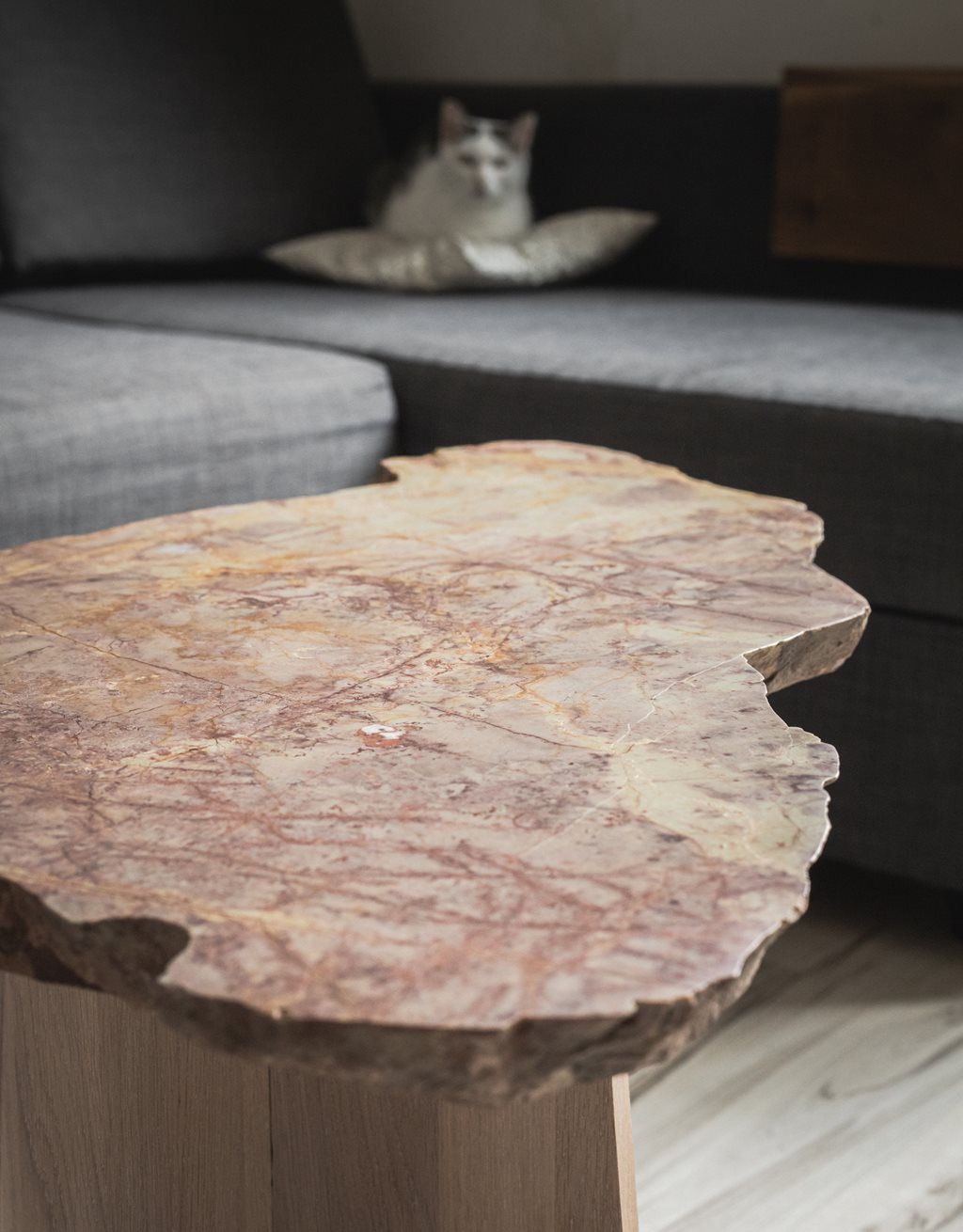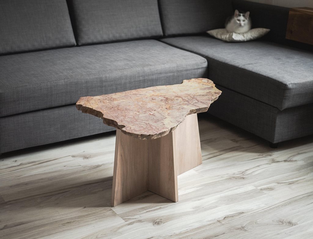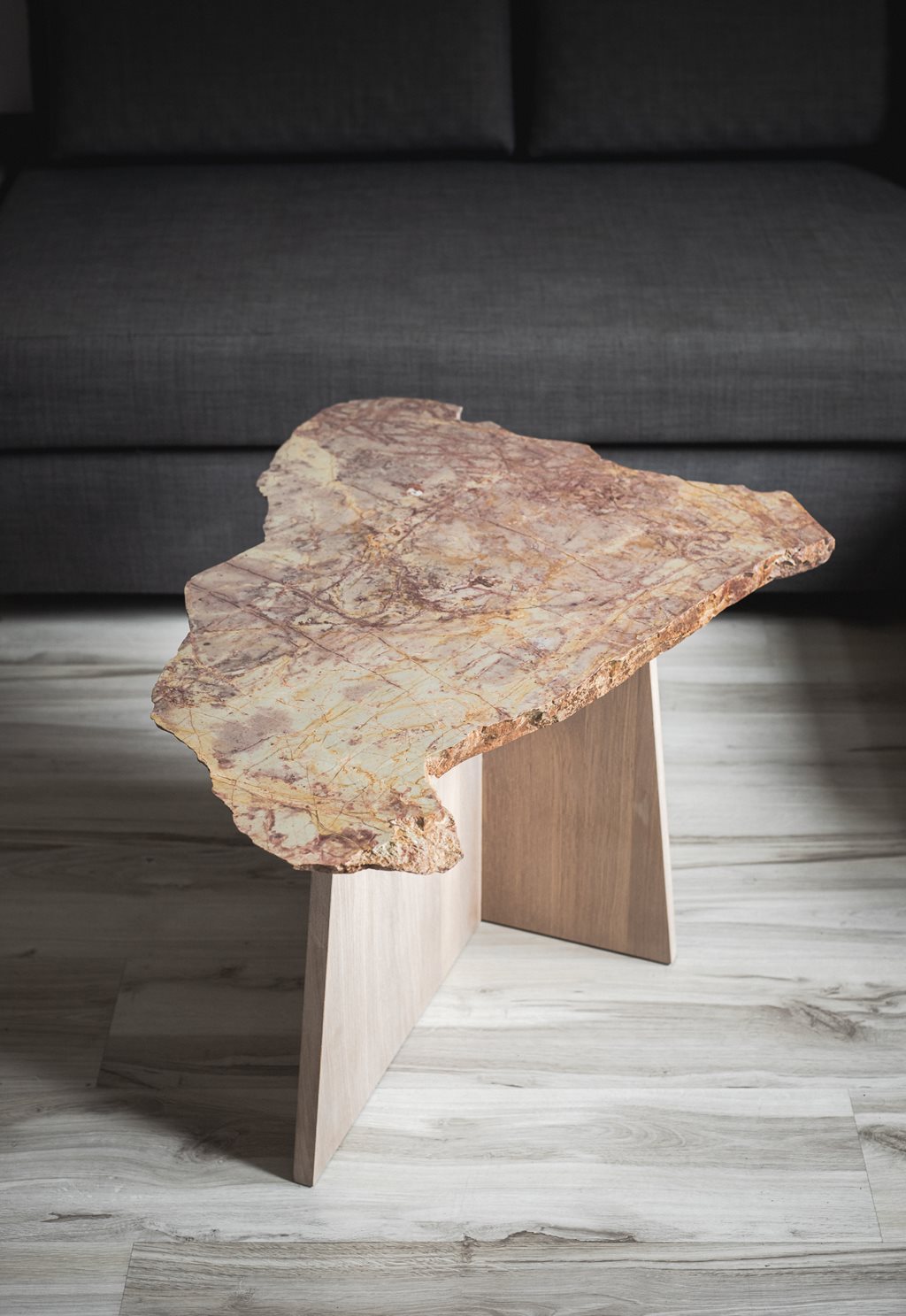 | Popis | Stolek s kamennou deskou se surovou hranou a minimalistickou dřevěnou podnoží. Konečně mohu představit design, který ležel v šuplíku více než 2 roky. Sehnat kámen, který by splňoval kritéria (zajímavý tvar a kresba, nepravidelná přírodní lomená hrana, bez prasklin atd.) nebylo vůbec jednoduché. Zde konkrétně lokální slivenecký mramor ve tvaru velikonočního ostrovu Rapa Nui. |