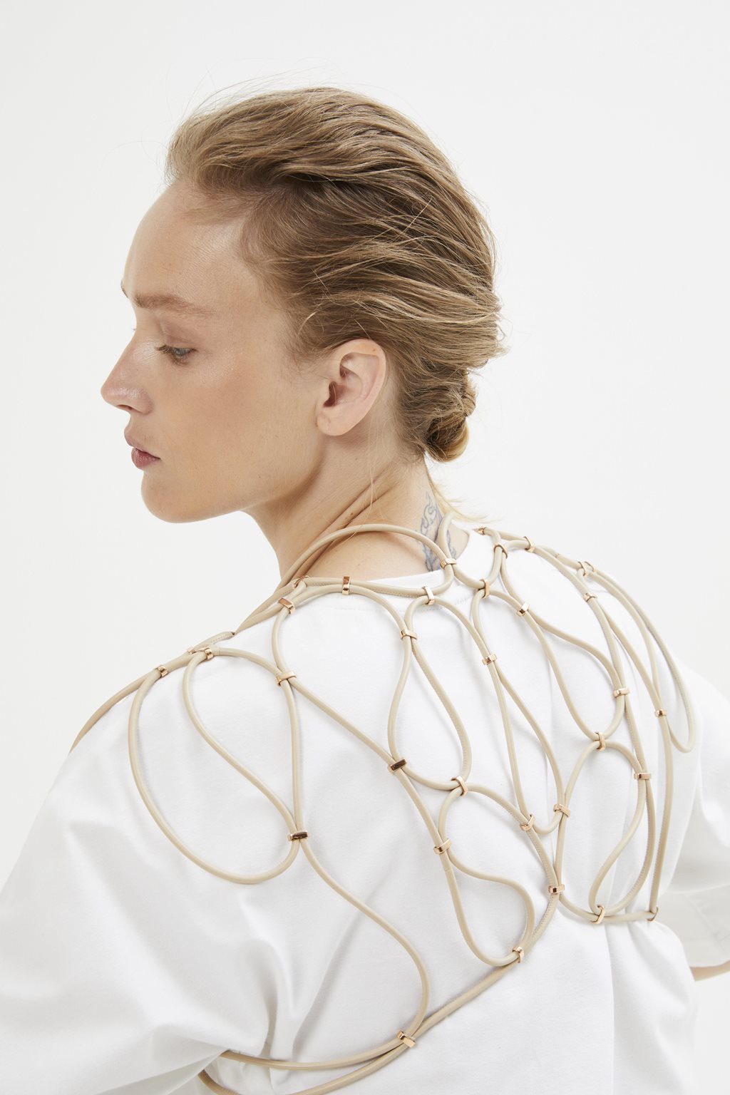 | Popis | Kolekce pro vlastní značku, která byla prezentována na Designbloku 2023 a získala nominaci na cenu Czech Grand Design v kategorii Designér šperku roku. Klíčovým prvkem kolekce jsou hravé linie, které připomínají plynutí meandrů řeky. Základním materiál, kožená šňůrka, se vinutím proměňuje v unikátní díla na hranici doplňku, oděvu a šperku. |