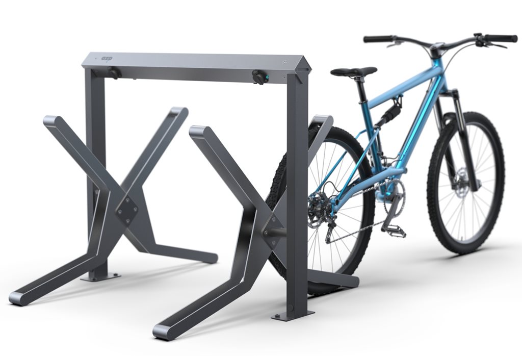 | Popis | Návrh stojanu byl koncipován jako modulární, umožňující různé uspořádání a umístění dvojice záchytných pozic pro jednotlivá kola. Sklon čelní plochy s napájecími zásuvkami zabraňuje zatékání vody. Stojan je kompletně vyroben s využitím nerezových polotovarů. Designu stojanu v maximální možné míře využívá optických vlastností přírodního nerezového povrchu pouze se začištěním svárů a leštěním. Pro grafické zpracování produktu, což představuje umístění firemního loga a optické zvýraznění nabíjecí zásuvky, byly z důvodu nižších finančních nákladů zvoleny fóliové polepy místo dražší varianty aplikace sítotisku. |