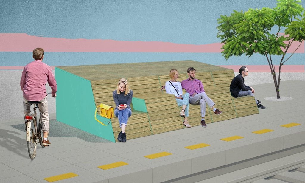 | Popis | Cyklobox a modulární sedací systém v jednom Hide & Bike přináší do města hravost a kreativitu. Slouží k uložení kol a zároveň jako variabilní lavice, z které lze pozorovat místo i z jiné než běžné perspektivy. Hlavní objem tvoří box pro uložení kol, přídavné moduly slouží jako sedáky ve dvou výškových úrovních a umožňují vystoupat až na zastřešení. Celý box tak lze užívat k sezení či ležení. Je možné jej umístit solitérně nebo jako řadu a vytvořit různé sestavy s širokým využitím. Od dlouhé lavice po kompaktní sestavu tvořící elevaci městského hlediště či pohodlné molo k slunění. |