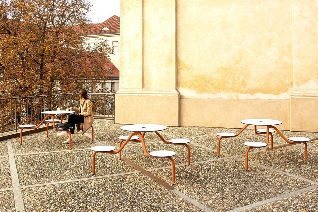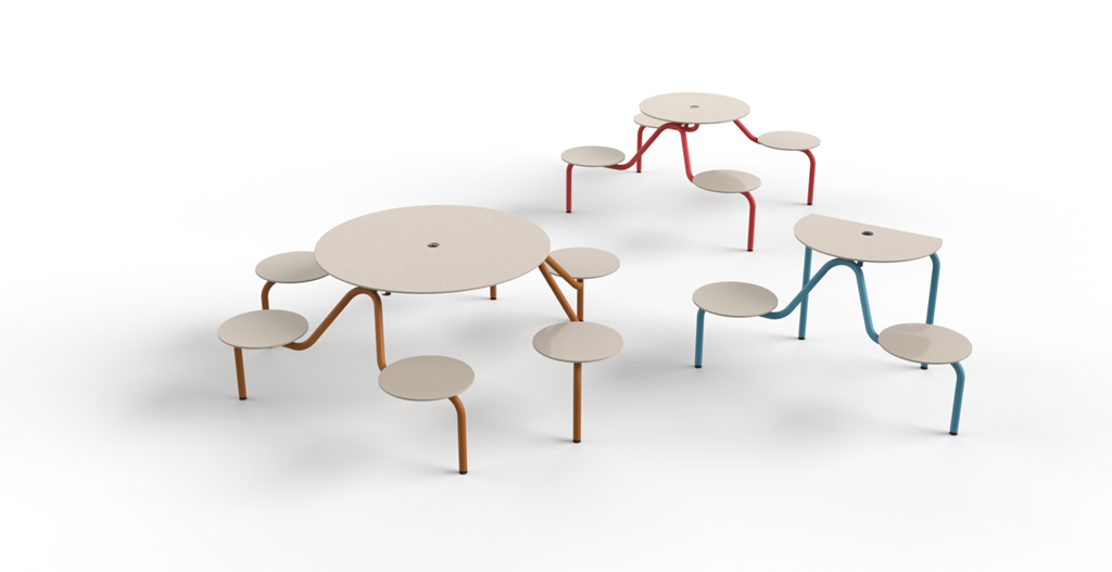 | Popis | Navrhli jsme modulární systém venkovního sezení, který oživí veřejná prostranství a propojí estetiku s funkčností. Díky odolné konstrukci zvládne jakékoli počasí, snadno se přemisťuje a skladuje. Vhodný pro městské parky, náměstí, kavárny i firemní zóny. Kombinace dřevěných ploch a kovového podnoží umožňuje variabilní barevné provedení. Stůl je vybaven otvorem pro slunečník. |