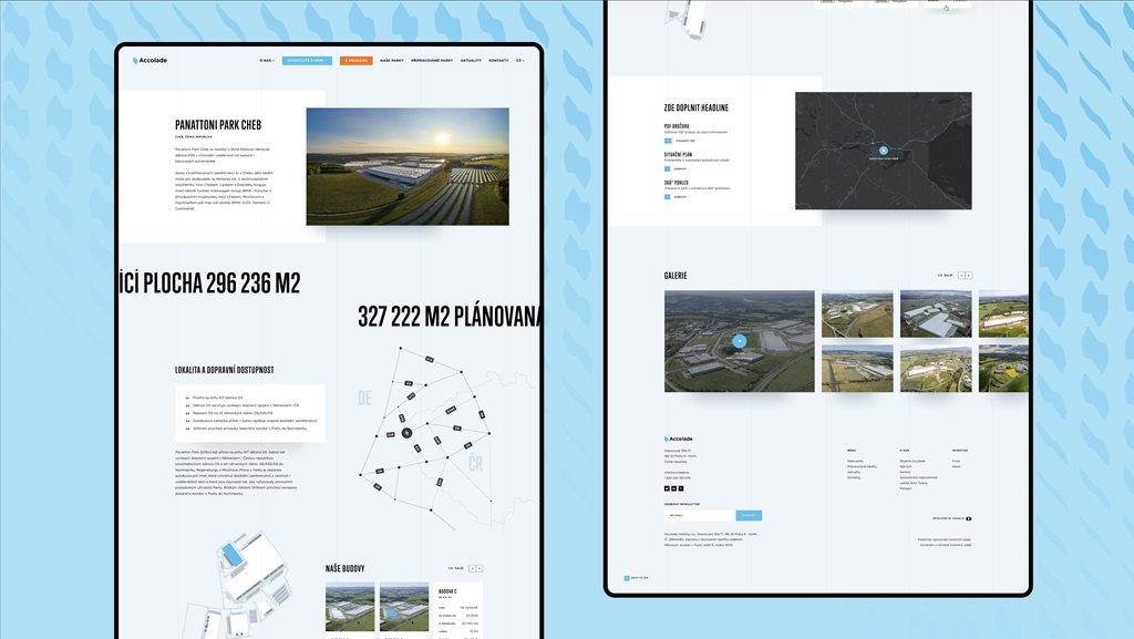| Získaná ocenění | V období po realizaci projektu došlo k dalšímu posílení tržní pozice skupiny Accolade: – hodnota portfolia společnosti se meziročně zvýšila přibližně o 350 mil. EUR – spravovaná plocha portfolia vzrostla přibližně o 200 000 m² – portfolio se dále rozšířilo na 62 průmyslových parků v osmi evropských zemích, – počet nájemců se meziročně zvýšil o desítky nových subjektů a přesáhl hranici 210 nájemců, – v roce 2024 byla úspěšně realizována emise zelených dluhopisů, u které byl původně plánovaný objem 1,5 mld. Kč více než dvojnásobně přeupsán a navýšen na 3 mld. Kč, což potvrdilo vysokou důvěru investorů ve značku a její komunikaci. Tyto výsledky odrážejí dlouhodobě konzistentní budování značky, jejíž digitální prezentace hraje klíčovou roli v komunikaci hodnot, strategie a investičního potenciálu společnosti. |