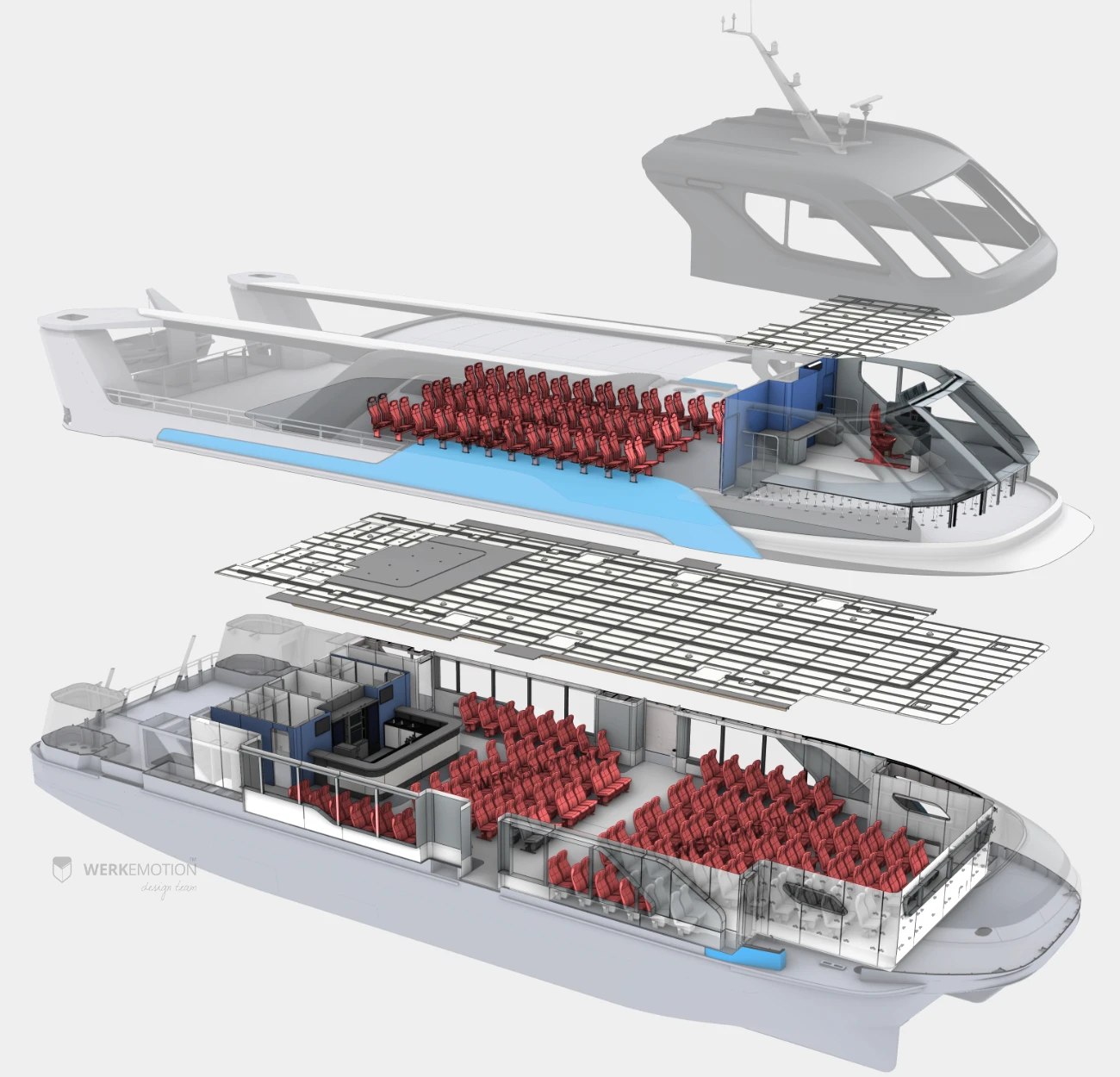 WERKEMOTION je designové studio zaměřené na transportní a průmyslový design. Od roku 2013 poskytujeme komplexní služby v oblasti návrhu produktů – od tvorby strategie a konceptů přes 3D modelování, vizualizace a animace až po kompletní podporu projektu ve fázi výroby a uvedení na trh. Využíváme hluboké znalosti různých oborů, technologií a materiálů, abychom vytvořili inovativní produkty s důrazem na vyrobitelnost, ekonomickou efektivitu, udržitelnost a podporu lokální výroby. Díky našim zkušenostem a prověřené síti dodavatelů zajišťujeme, že náš produkt splňuje nejvyšší kritéria kvality i výrobní proveditelnosti. Naše projekty jsou chráněny patenty a tvarovými registracemi po celém světě a získaly nejprestižnější ocenění, jako jsou Red Dot, iF Design Award nebo German Innovation Awards.