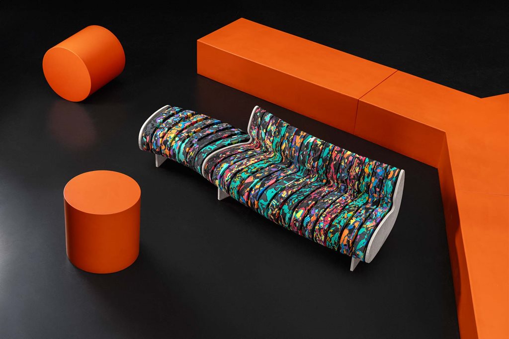 | Description | A collection of sofas made from recycled materials, intended for public spaces. The lightweight, modular design enables easy assembly and repairs, and saves space during transport and storage. |