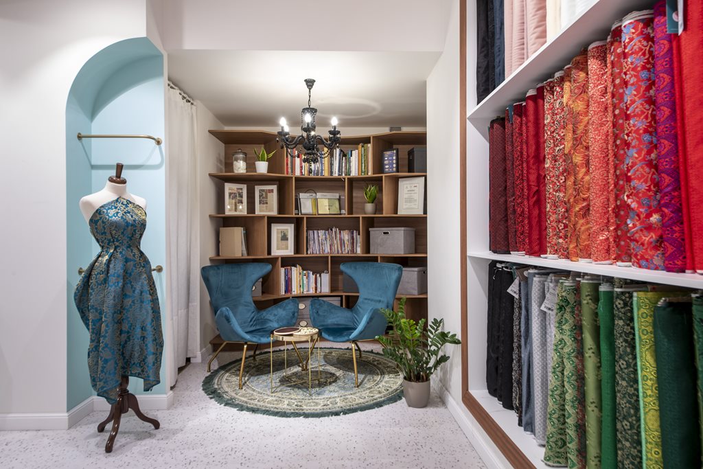 | Description | Silk has been a sign of exclusivity and uniqueness for centuries. And so is the Sartor Bohemia showroom in Prague's Vinohrady district, which brings us the most beautiful and delicate fabrics from all over the world. Glossy and fine silks, colourful brocades, natural linens. Unique colours, historical patterns, modern natural viscose. The variety of fabrics brought us to the idea of the temple. A place where history and elegance combine with luxury to create a unique space of rounded shapes. A temple of fabrics. |