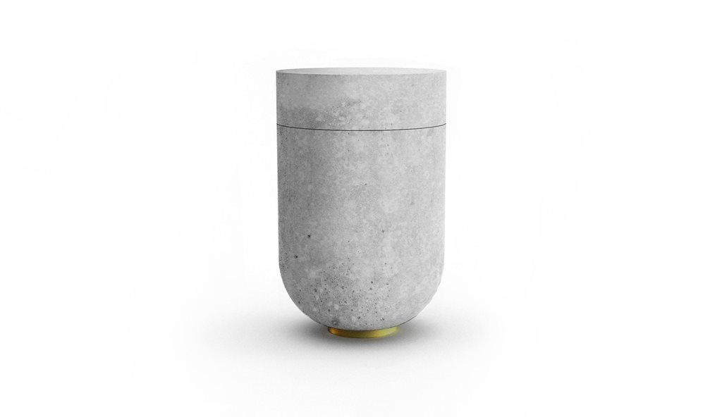 Description In collaboration with MONOLIT studio, we developed the Vessel concrete urn. The result is a minimalist, handmade concrete urn that combines timeless aesthetics with precise craftsmanship. The natural concrete used gives the urn raw elegance, durability and a unique patina. The urn stands on a discreet metal ring and its concrete lid is equipped with a magnetic closure that ensures safe and long-term preservation of the contents.