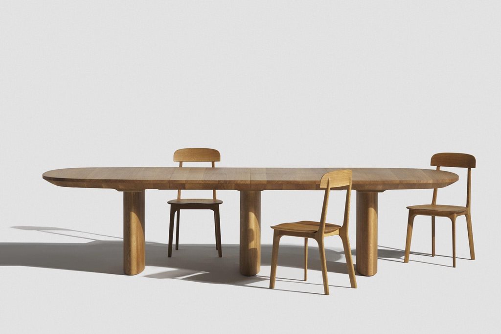 | Description | The brief from Kaplan 1934 was to design an extendable table with an oval top and a central base. The resulting opulent design of the Tria table is built around a central composition. A massive elliptical tabletop rests on three oval pillars, concentrated beneath its center of gravity. The table offers three size variations. It can be expanded from a compact monolithic solitaire to an almost twice-as-long banquet table. Tria commands attention and enhances the dining experience. Its hedonistic design and meticulous craftsmanship bring a sense of exceptionality to everyday life—and make exceptionality feel effortless. |