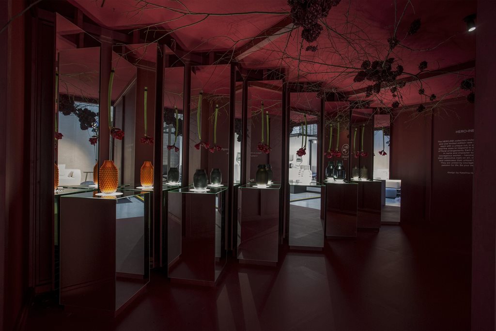 | Description | Our task was to create an environment that would best emphasize the aesthetics and functionality of products, specifically the new collections of candles and candleholders, AMOR FATI, and vases HERO.INE. One of the main elements of our presentation was the use of mirrors, creating an interesting visual effect. Vases are strategically placed to be visible from various angles, allowing visitors to explore their design and details from different perspectives. |