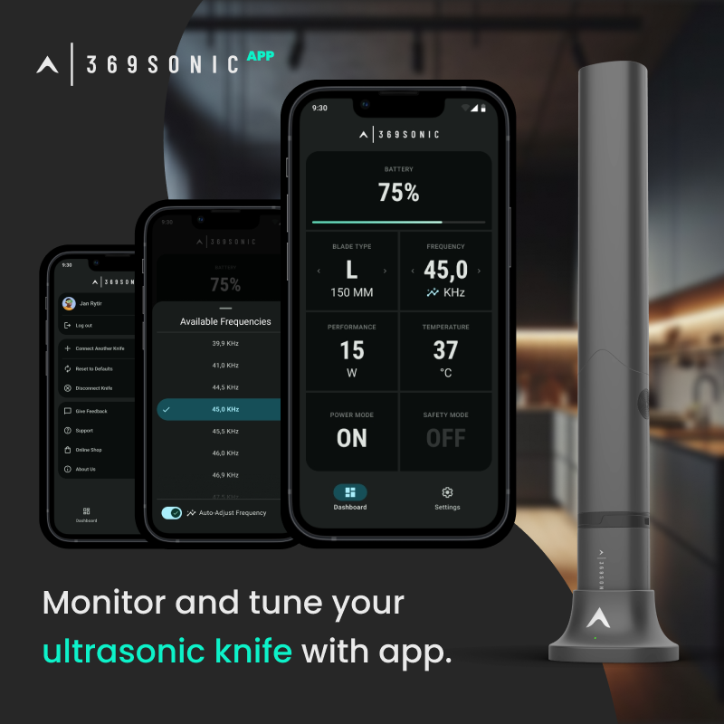 | Description | UI/UX design of a mobile application for managing and configuring the paired ultrasonic knife. It allows manual or automatic adjustment of the cutting frequency depending on the used cutting blade variant and the current operating temperature. It also enables the activation of power-boost and safety mode. |