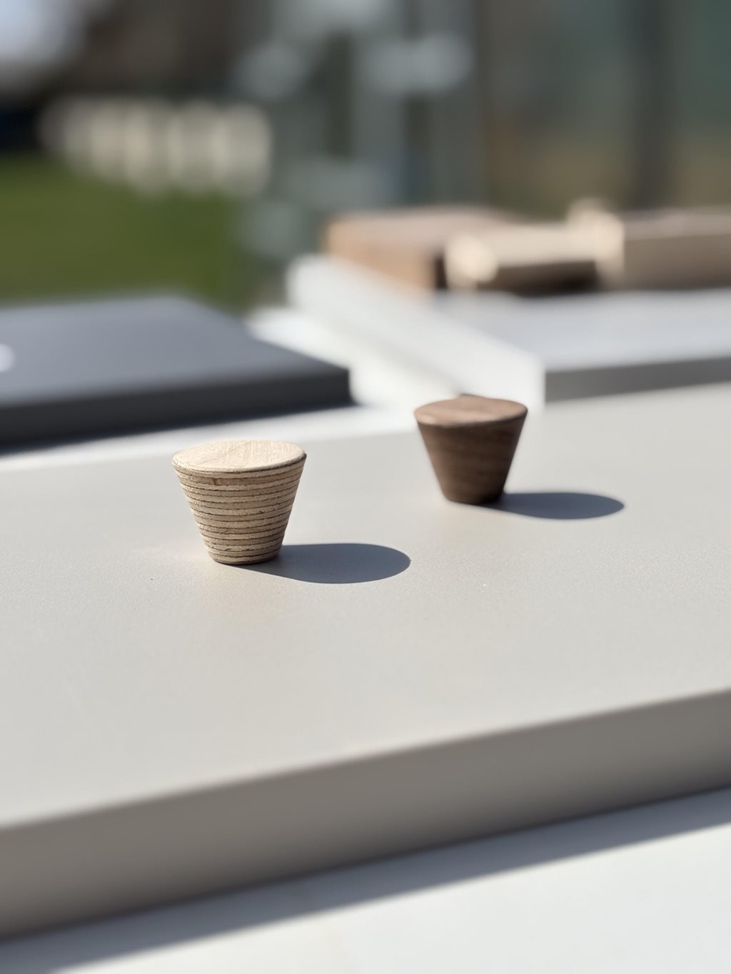 | Description | In collaboration with carpenter Jan Koutský, a concept for a product line of wooden accessories was developed, utilizing surplus materials from his woodworking workshop. The goal was to make efficient use of available resources, combine traditional craftsmanship with modern design, and create products that are both affordable and original. The result of this collaboration includes handles made from birch offcuts and knobs in various versions – from birch plywood and American walnut. These details can enrich standard laminated particleboard products and add a unique visual element without significantly increasing production costs. |
